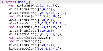 很不错的作品,很有想象力。后期可以学习函数复用和更多的几何变化来提升作品质量。尤其是函数复用,是入门代码编程的关键!另外,一定要注意结尾的分号哦,第70行代码没有加分号,有感叹号提示!这个在比赛中会扣分的!加油!