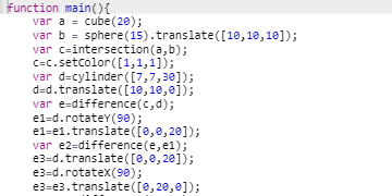 不错,可以做出8个单词以外的几何体了!灵活应用相减!后期可以做出更复杂的几何体,把代码行数增多,也可以做函数复用!