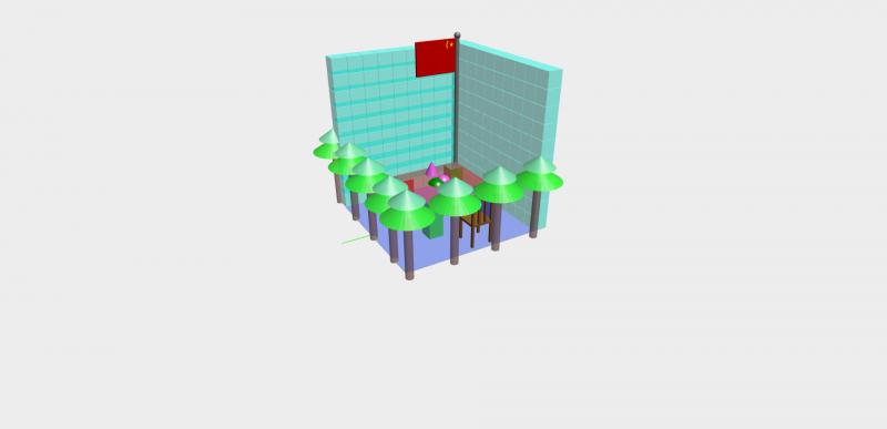 比较有创意,能熟练使用八个单词和其它一些几何体,能使用函数复用,接下来可以学习循环。