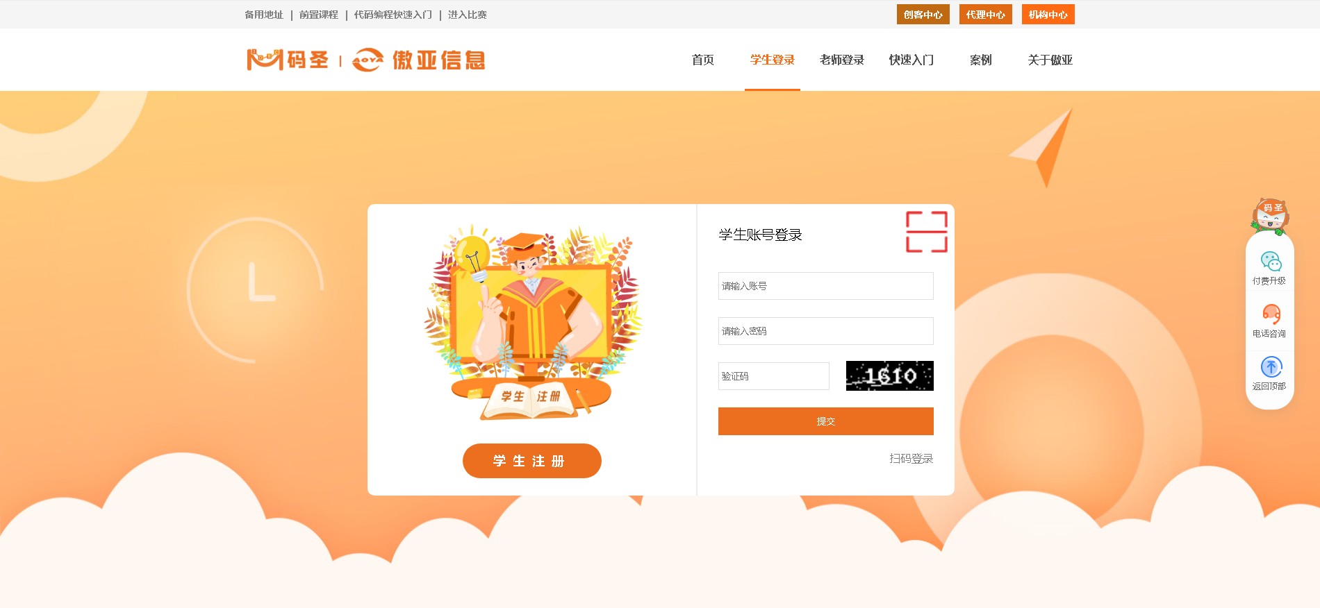 2.点击学生登录,输入账号密码进行登录,如果没有账号,则点击 学生注册 按钮