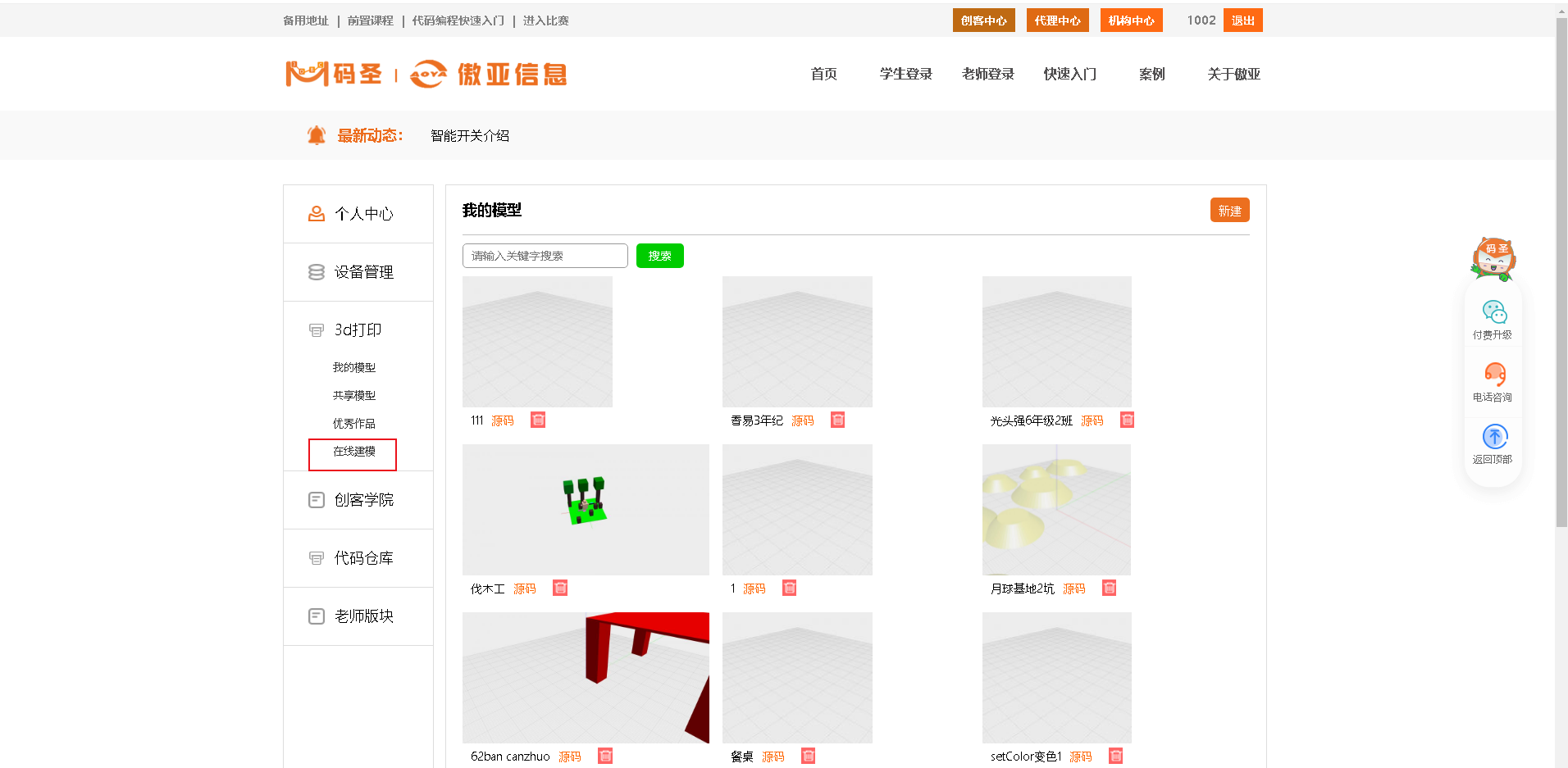 3.选择左侧栏3D打印-在线建模,开始创作作品