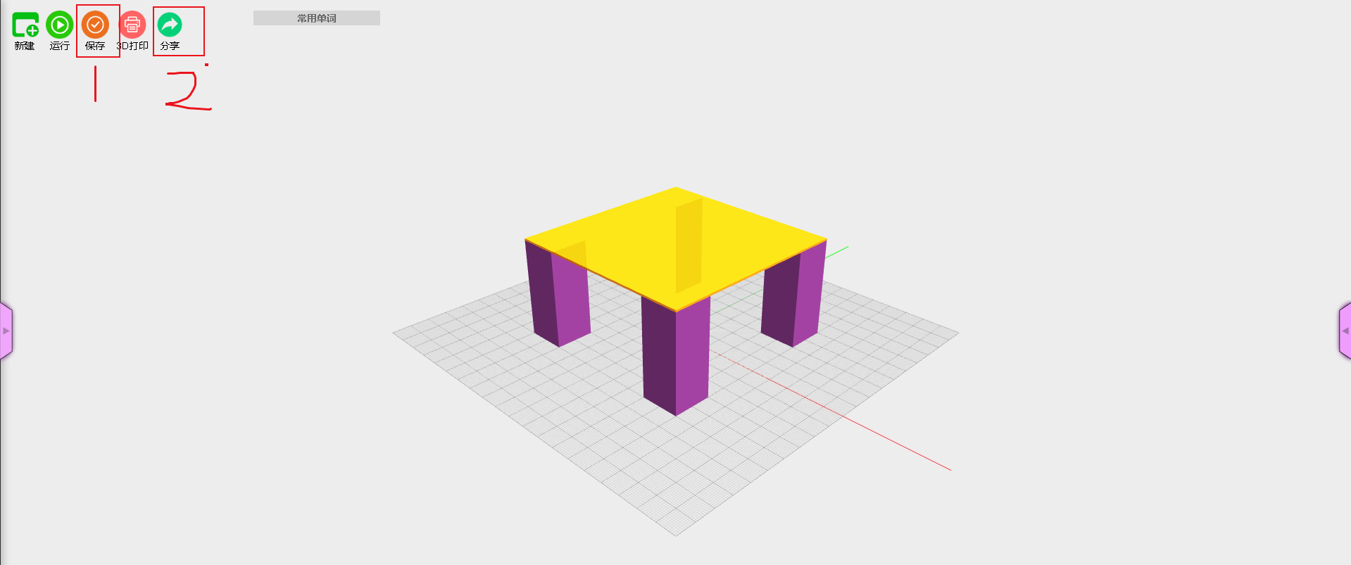 4.作品创作完成后,点击保存按钮进行保存,保存完成后点击下图2分享按钮