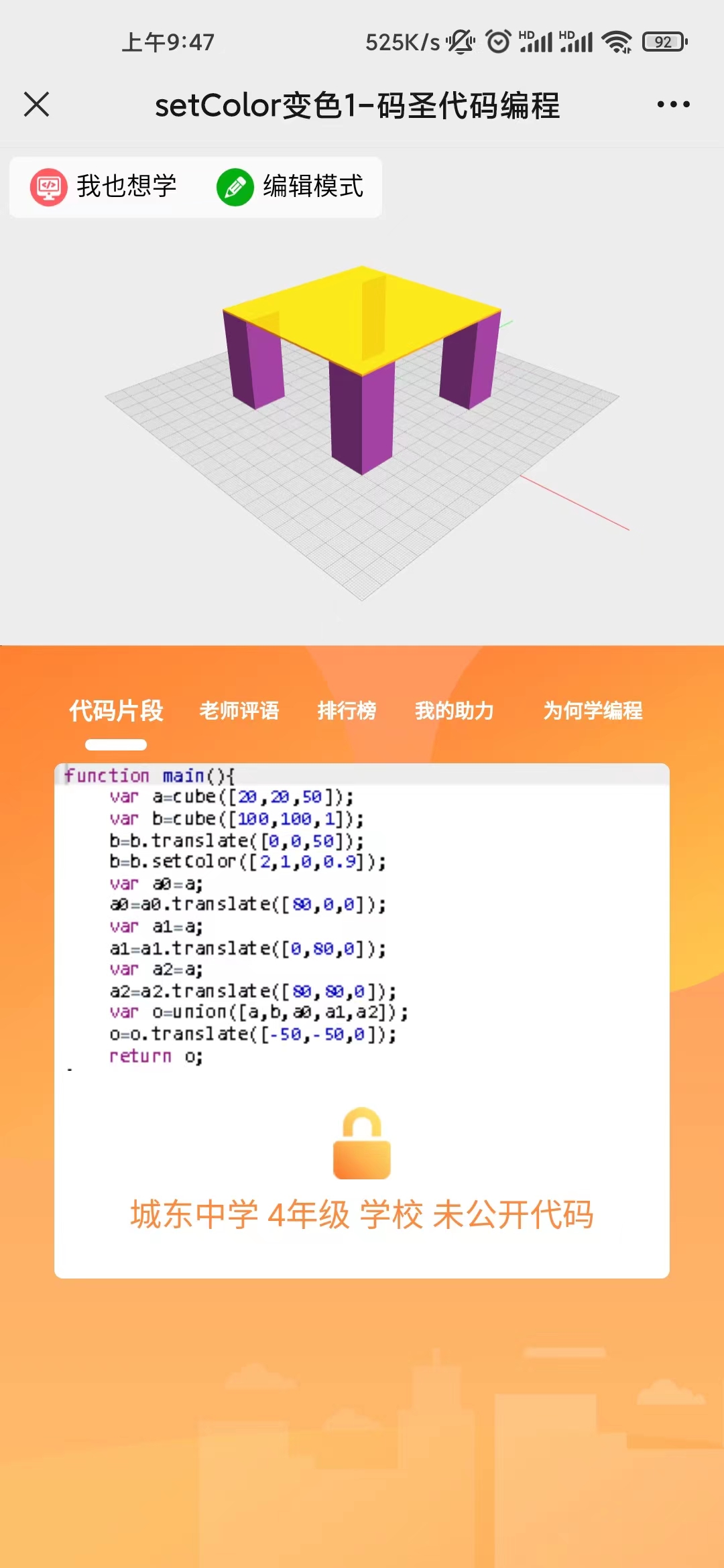 7.微信扫码后,将该页面发给班级群里,让老师进行审核,分享的作品是比较正式的展示作品,请不要分享未做完的半成品。