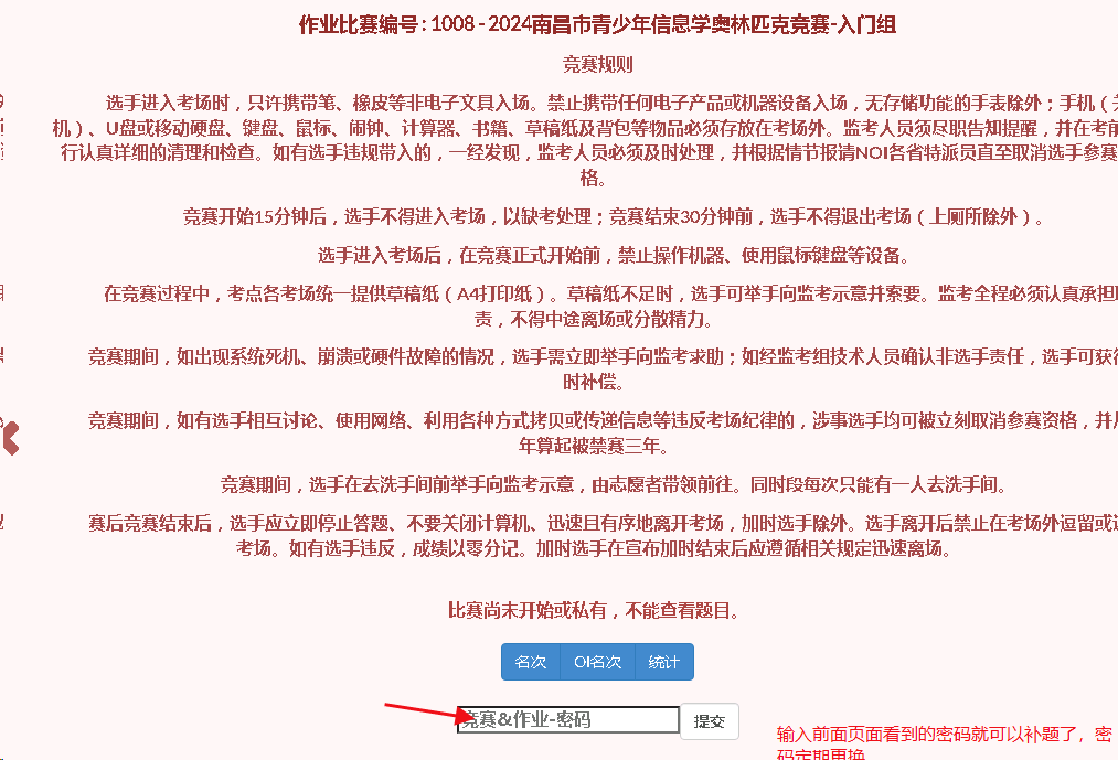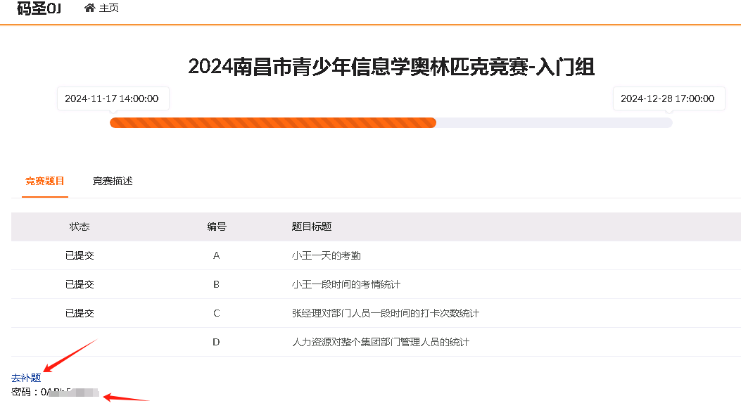 登录后,下面有本场考试的补题密码,复制到后面的补题页面就可以补题了。