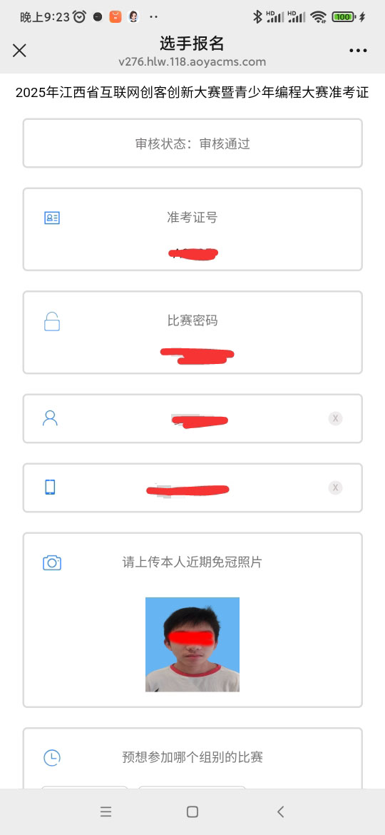 使用微信访问下面地址,输入选手身份证号查询并截图打印,不限制打印格式,一般用A4纸黑白打印即可,参加多场比赛只需打印一份: